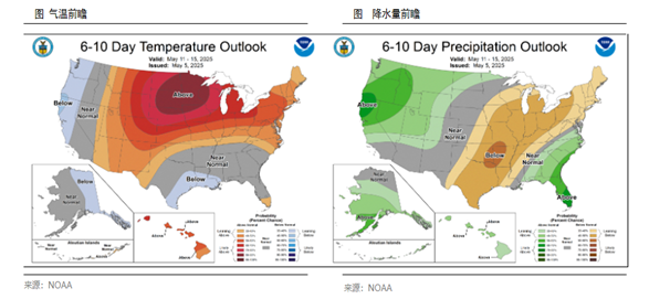 根据美国农业部数据,截至5月5日,美国春小麦种植进度44%,高于五年同期均值的34%,出芽率13%,高于五年同期均值的9%。美国春小麦播种进度超过往年同期。